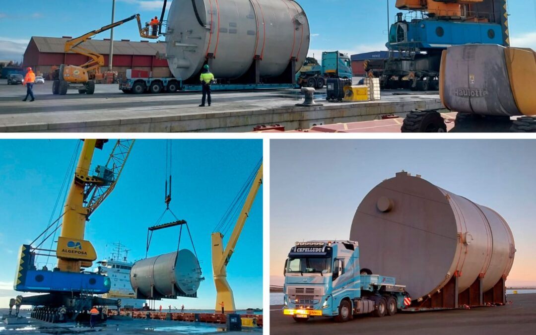 Se trata del embarque de 5 tanques de acero, de 35 toneladas cada uno, fabricados por la empresa DOMINION | Ingeniería y Construcción Industrial para su exportación a Bélgica.